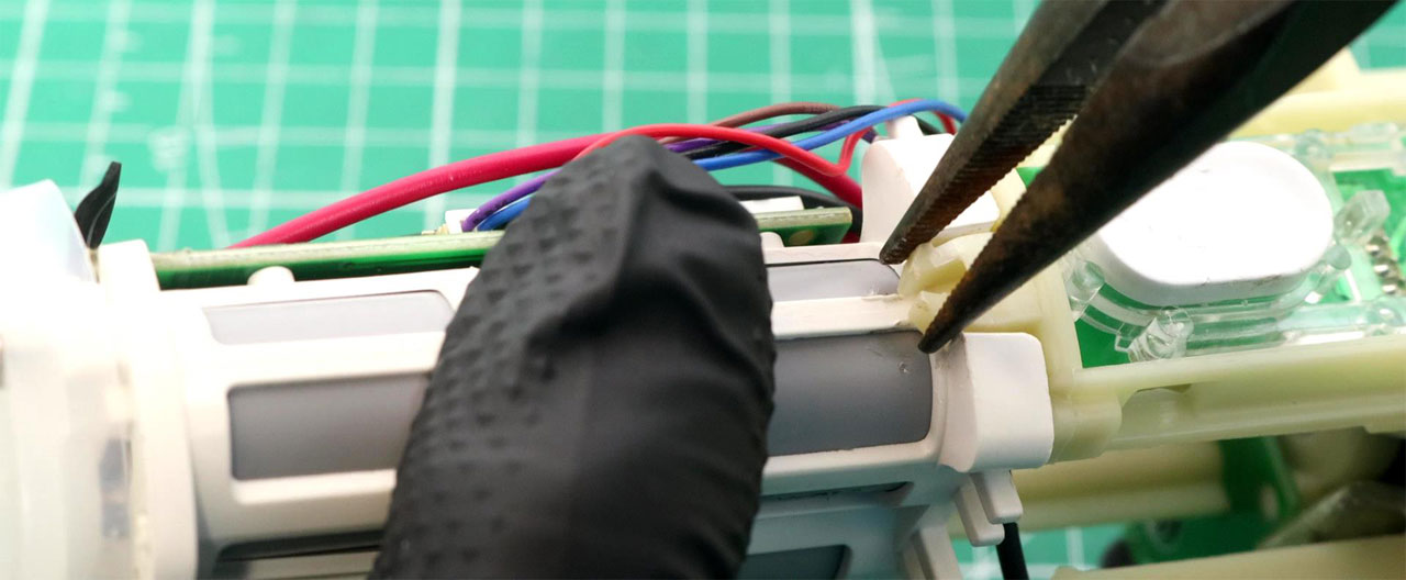そこでこの記事では、なるべく外装の損傷を抑えながら、本体(ハウジング)から、モーター、回路基板、バッテリーセルなどが一体となった内部ユニットの取り出し方を解説します。