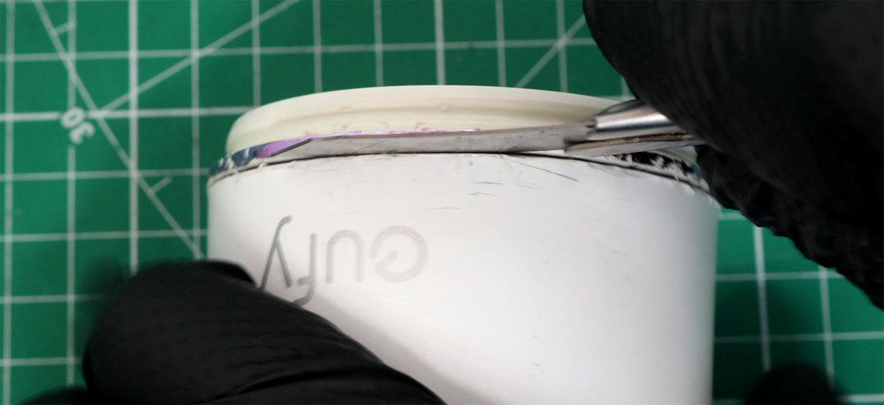 これらの爪の位置は、eufyのロゴを2つの爪の間に位置するように配置されており、残りの2つはその爪の対角線上にあります。そのため、取り外し方のコツは、爪の位置の両側にこじる工具を配置してこじ開けることです。