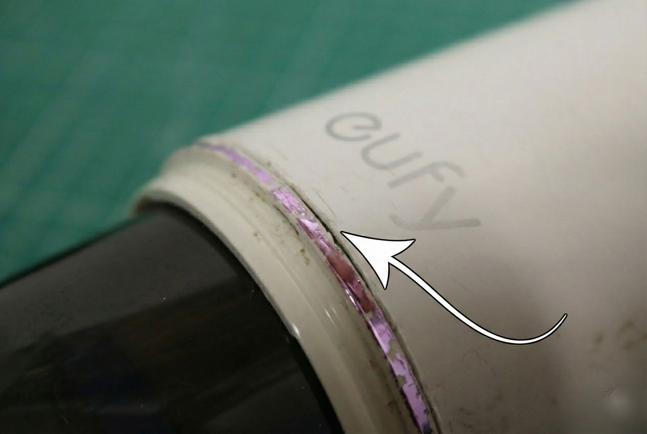 ハウジングとメインカバーを取り外したら、爪の部分に潤滑剤を塗布しておきます。こうすることで次回から軽い力で取り外せるようになります。ハウジングとメインカバーを取り付ける場合は、メインカバーの突起した部分をeufyのロゴに合わせて、地面に押し付けながら差し込みます。