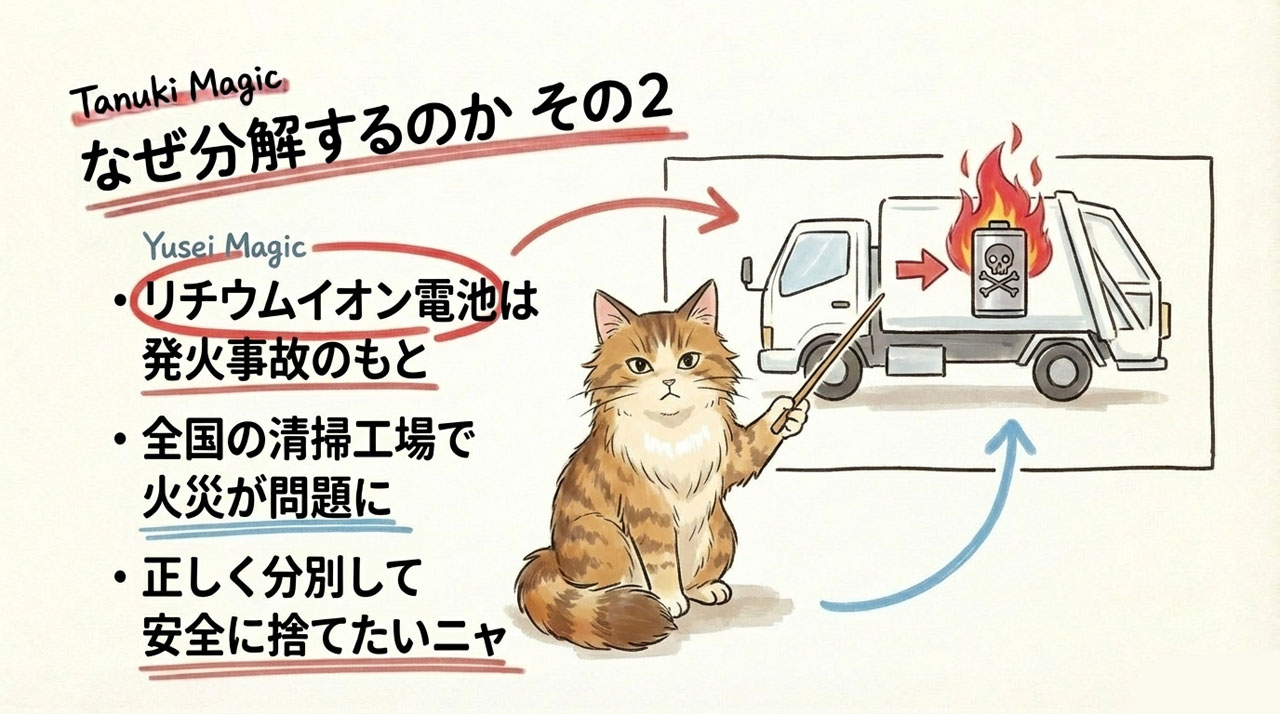 また、近年、リチウムイオン電池の発火や破裂を原因とする事故が相次いでおり、ごみ収集車や一般廃棄物焼却施設(清掃工場)で火災が発生する事例が全国的に問題となっています。
